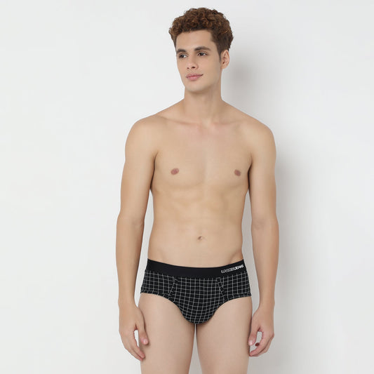 UnderJeans by Spykar Men Basic Dark Grey Checks Ultrasoft Briefs