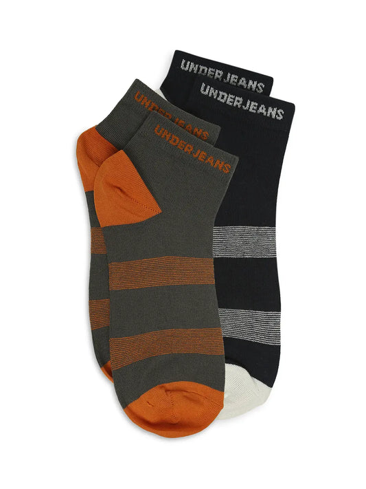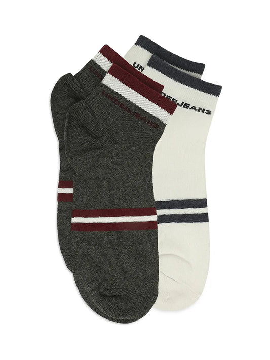 Men Dark Grey & Navy Ankle Length Socks - Pack Of 2- Underjeans by Spykar