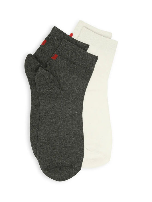 Men Anthra Melange & White Ankle Length Socks - Pack Of 2- Underjeans by Spykar