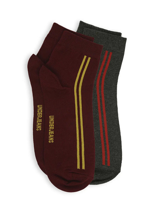 Men Maroon & Anthra Melange Ankle Length Socks - Pack Of 2- Underjeans by Spykar
