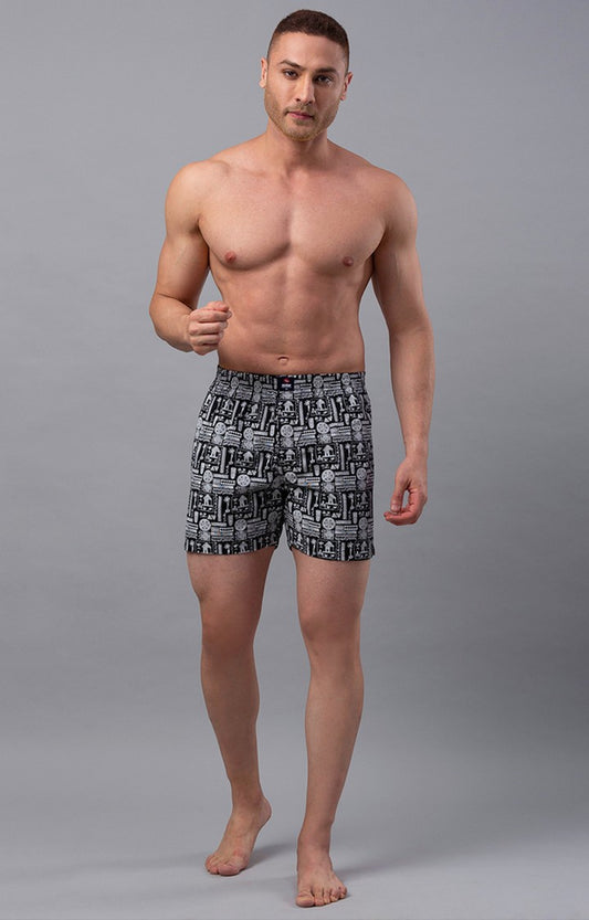 Black Cotton Boxer for Men - UnderJeans by Spykar
