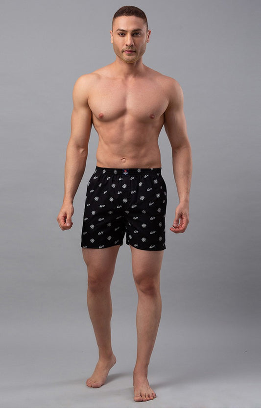 Black Cotton Boxers for Men - UnderJeans by Spykar