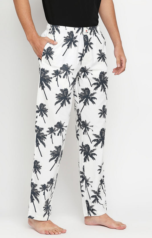Men White & Navy Printed Regular Fit Pyjama- UnderJeans By Spykar