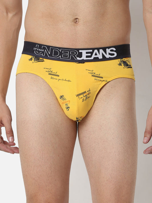 Yellow Cotton Brief for Men - (Pack of 2)- UnderJeans by Spykar