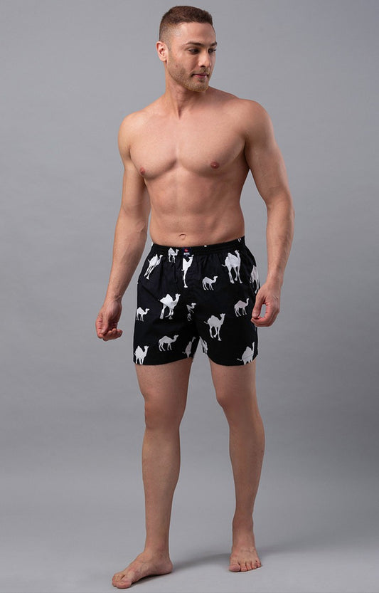 Black Cotton Boxer for Men - (Pack of 2)- UnderJeans by Spykar