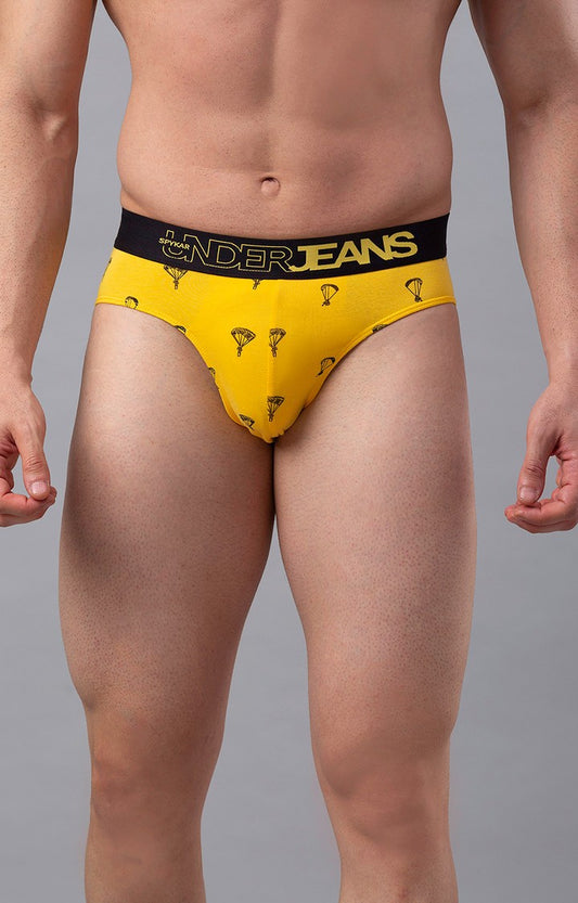 Men Cotton Blend Yellow Brief - (Pack of 2)- UnderJeans by Spykar