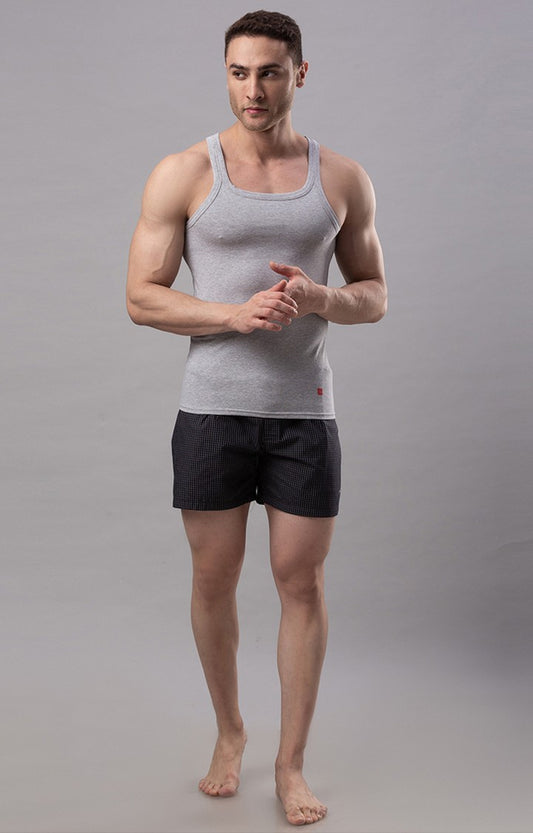 Grey Cotton Lycra Vest (Square Neck)- UnderJeans by Spykar
