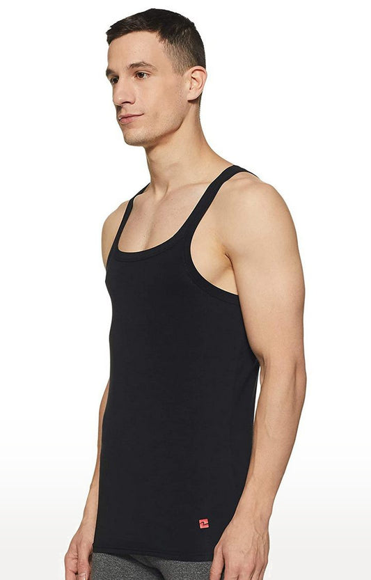 Black Cotton Lycra Vest (Square Neck)- UnderJeans by Spykar
