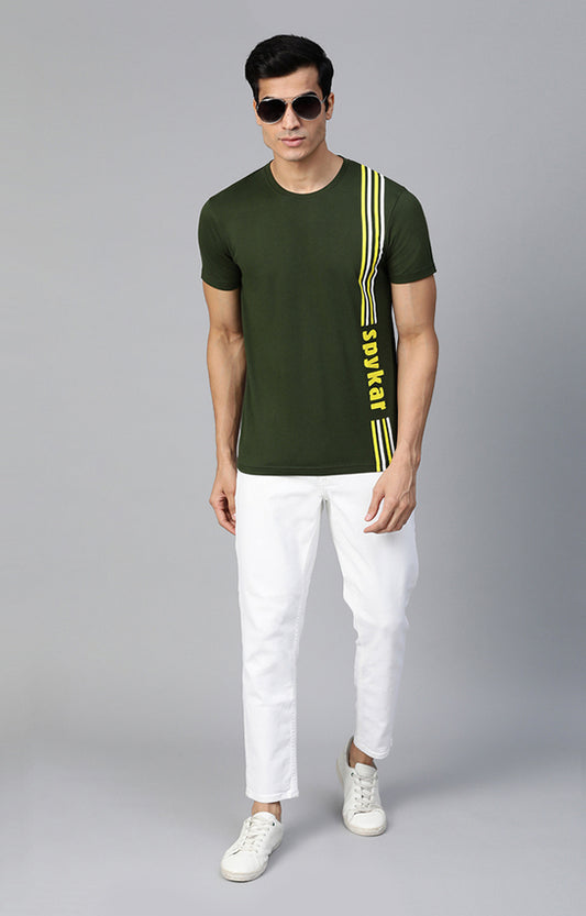 Olive Cotton Solid Round Neck T-Shirts- UnderJeans by Spykar