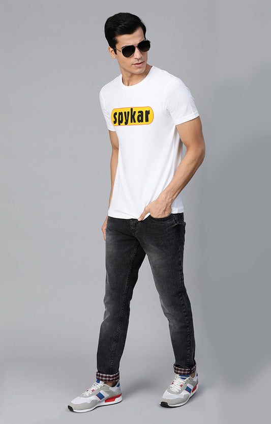 White Cotton Printed Round Neck T-Shirts- UnderJeans by Spykar