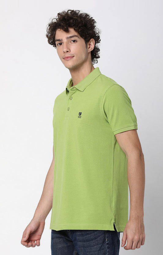 Men Spinach Green Cotton Polo T-Shirts- UnderJeans by Spykar