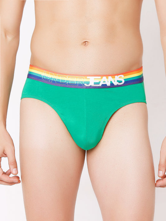 Men Green-Multi Navy-Multi White-Blue Cotton Blend Brief (Pack of 3)- UnderJeans by Spykar