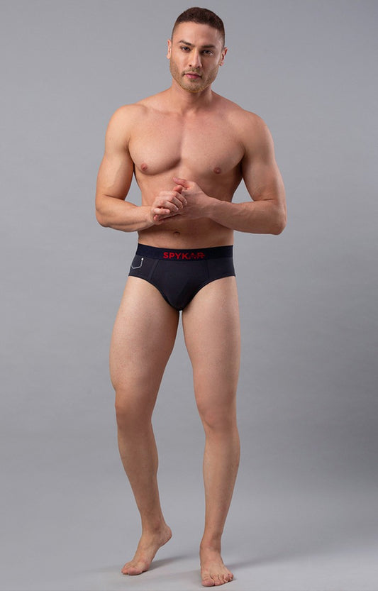 Men Grey Navy & White Cotton Blend Brief (Pack of 3)- UnderJeans by Spykar