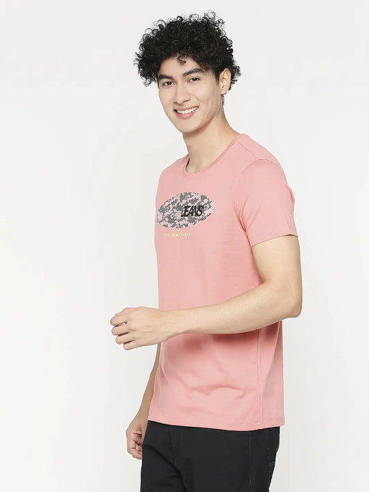 Men Dusty Coral Cotton Half Sleeve Printed Tshirt- UnderJeans by Spykar