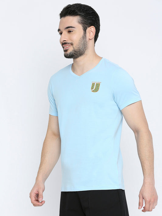 Men Powderblue Cotton V-Neck T-shirt- UnderJeans by Spykar