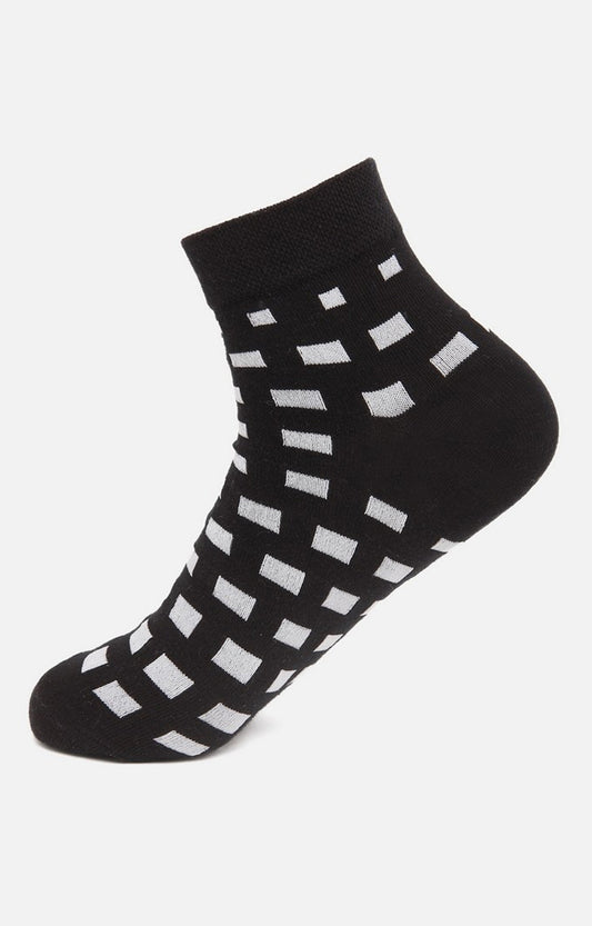 Men Black White Ankle Length (Non Terry) Single Pair of Socks- UnderJeans by Spykar