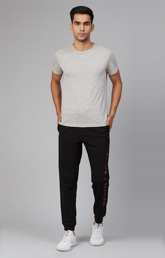Black Cotton Blend Solid Trackpants- UnderJeans by Spykar