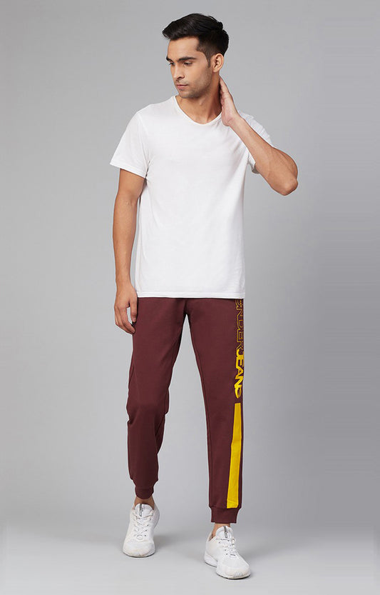 Maroon Cotton Blend Solid Trackpants- UnderJeans by Spykar