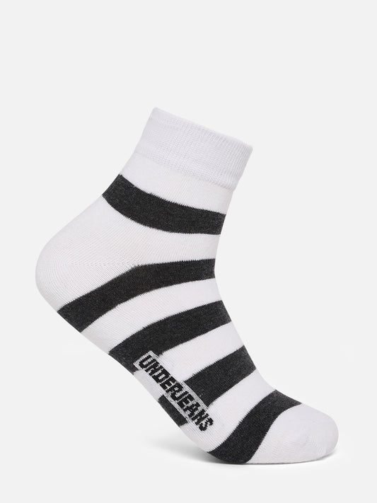 Men Grey Green White Ankle Length (Non Terry) (Pack of 3) Socks- UnderJeans by Spykar