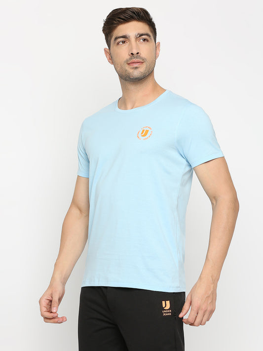 Men Powder Blue Cotton Round Neck Plain Tshirt- UnderJeans by Spykar