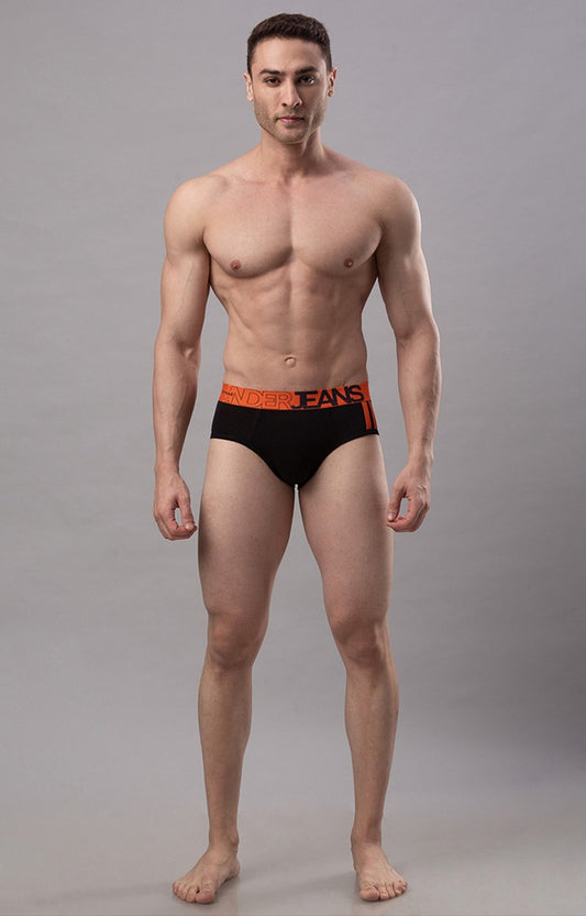 Black Cotton Brief for Men - (Pack of 2)- UnderJeans by Spykar