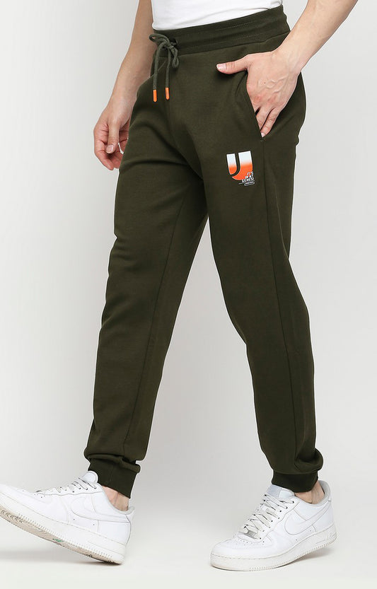 Men Cotton Blend Knitted Rifle Green Trackpant- UnderJeans by Spykar