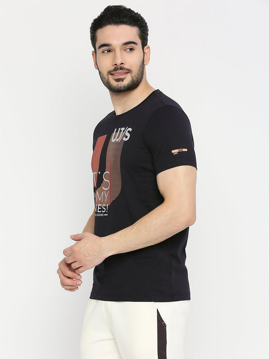 Men Cotton Navy Round Neck Tshirt- UnderJeans by Spykar