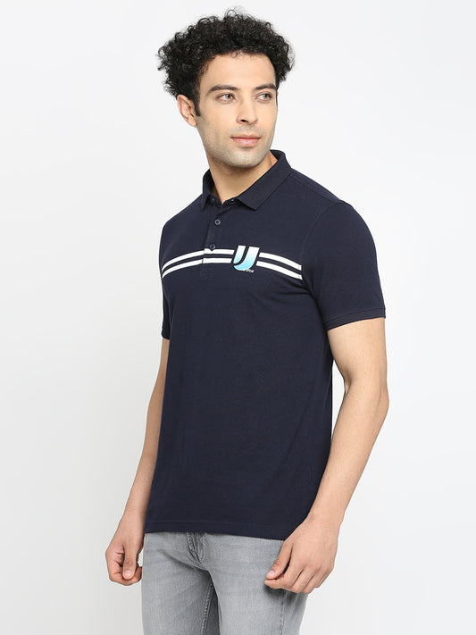 Men Cotton Navy Blue Polo T-shirt- UnderJeans by Spykar