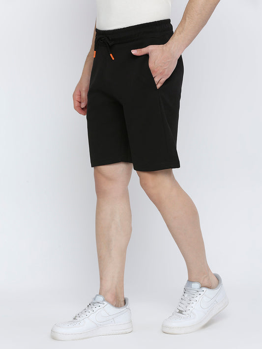 Men Cotton Blend Knitted Black Shorts - UnderJeans by Spykar
