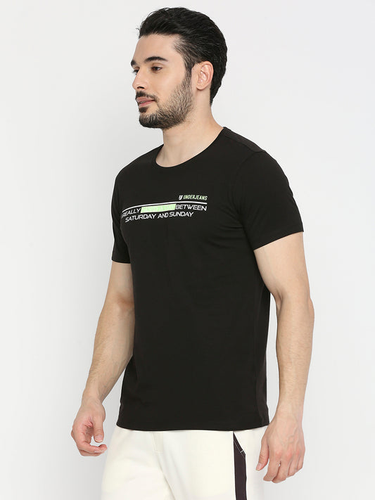 Men Cotton Black Round Neck Tshirt- UnderJeans by Spykar
