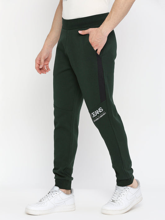 Men Cotton Bottle Green Trackpant - UnderJeans by Spykar