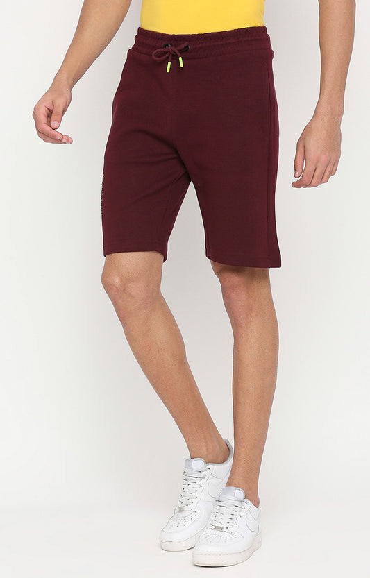 Men Cotton Blend Knitted Wine Shorts - UnderJeans by Spykar