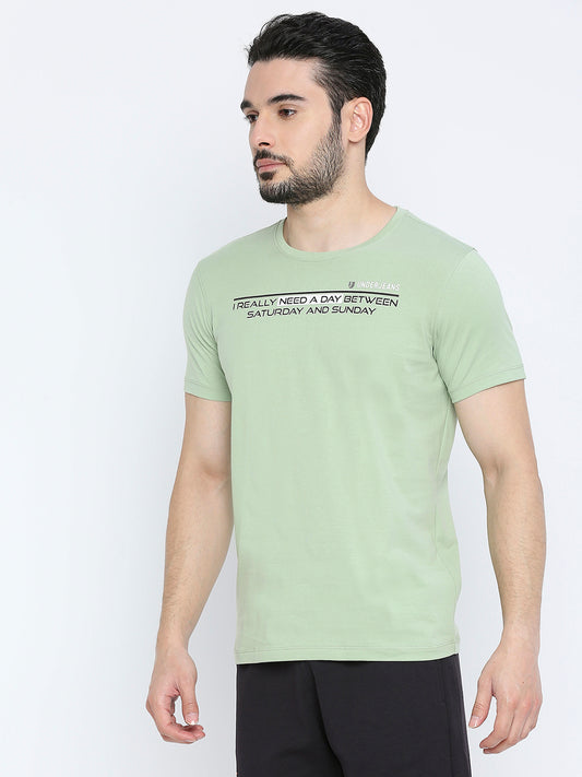 Men Cotton Dusty Pista Round Neck Tshirt - UnderJeans by Spykar