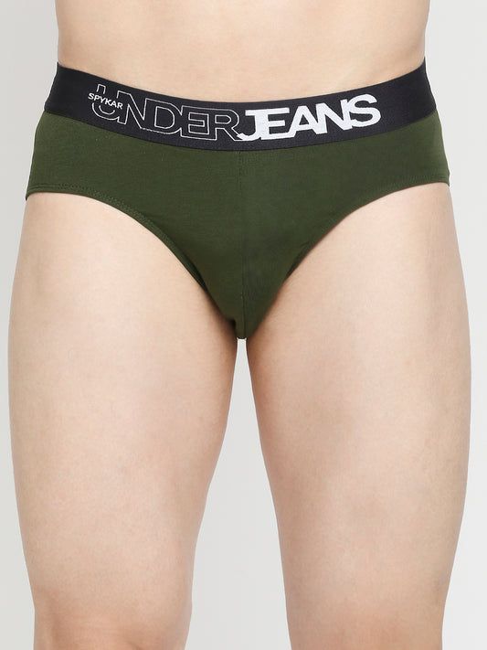 Men Olive & Black Cotton Blend Brief - Pack Of 2- UnderJeans by Spykar