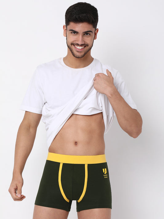 Men Cotton Blend Olive Trunk- UnderJeans by Spykar