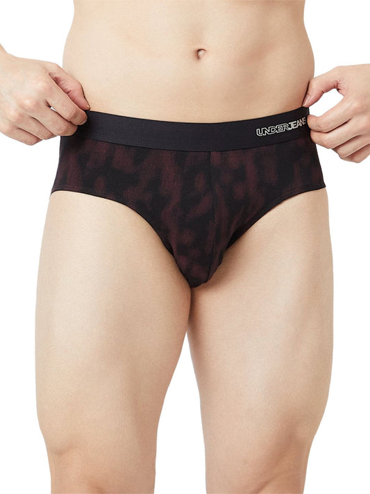 UnderJeans by Spykar Men Basic Black Wine Mid-Rise Printed Ultrasoft Briefs