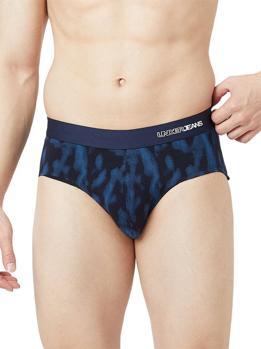 UnderJeans by Spykar Men Basic Navy Blue Mid-Rise Printed Ultrasoft Briefs