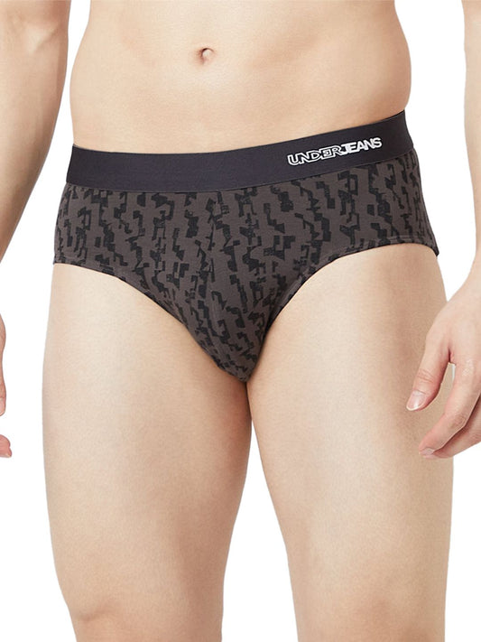 UnderJeans by Spykar Men Basic Grey Black Mid-Rise Printed Ultrasoft Briefs