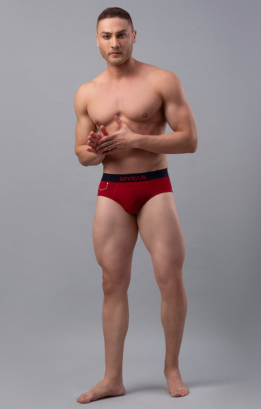 Men Cotton Blend Maroon Brief- UnderJeans by Spykar