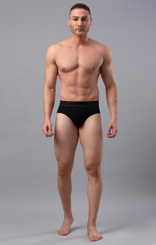 Men Black Cotton Blend Brief- UnderJeans by Spykar