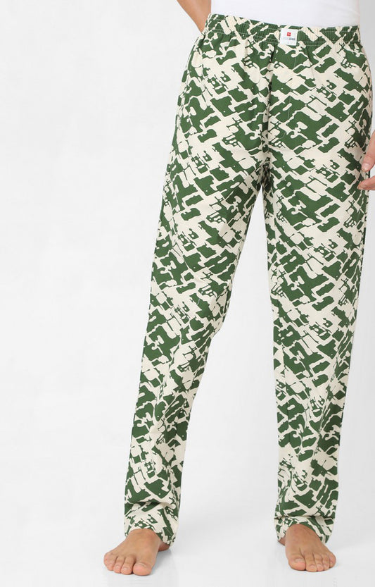 Men Off White & Olive Cotton Printed Pyjama - UnderJeans By Spykar