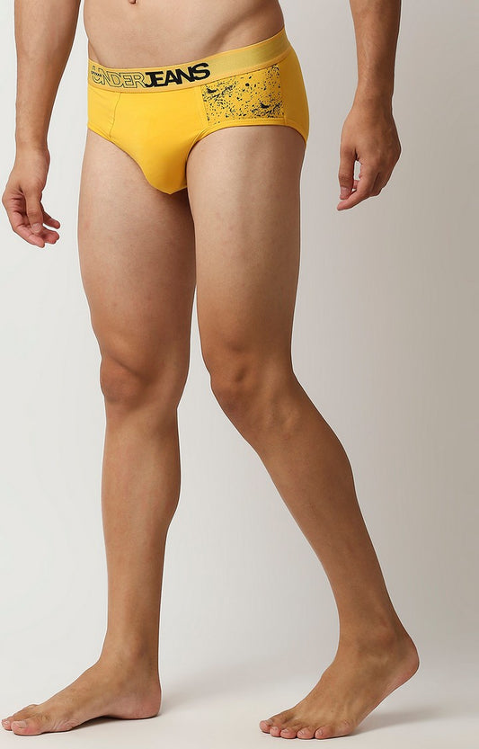 Men Yellow Cotton Blend Brief- UnderJeans by Spykar