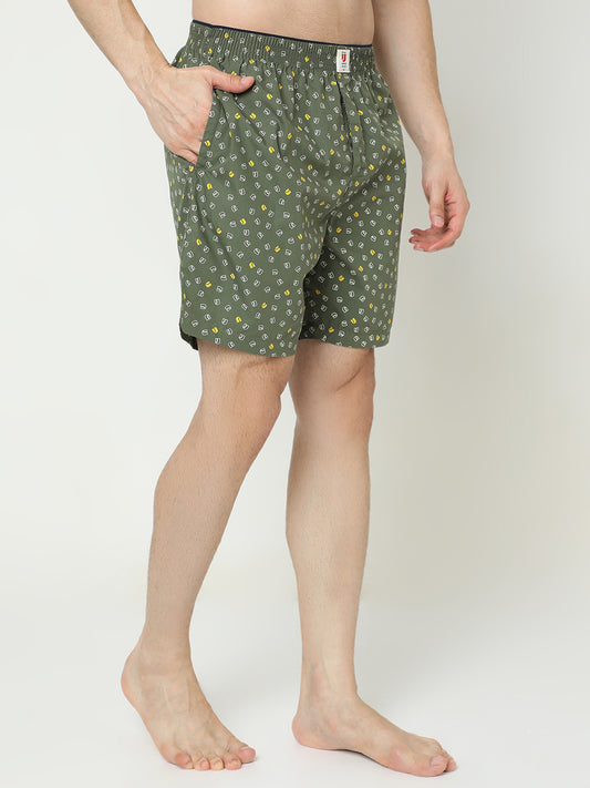 Underjeans by Spykar Men Green Cotton Blend Regular Fit Boxer Shorts