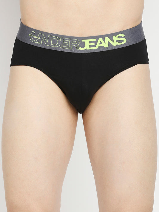 Men Black & Navy Cotton Blend Brief (Pack of 2)- UnderJeans by Spykar