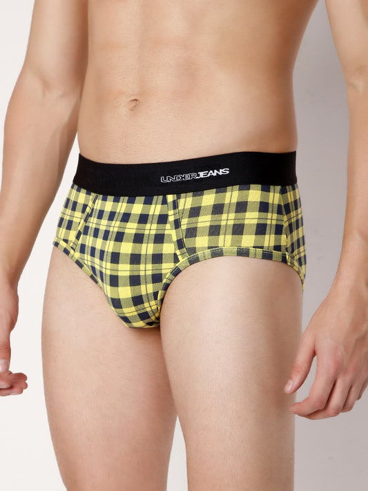 Underjeans By Spykar Men Yellow Check Cotton Blend Brief