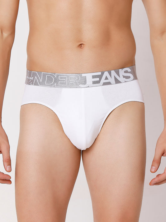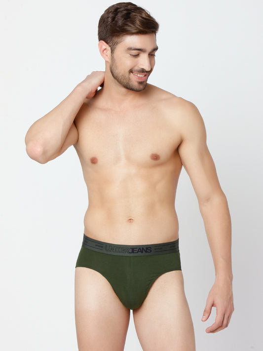 Men Olive & White Cotton Blend Brief (Pack of 2)- UnderJeans by Spykar
