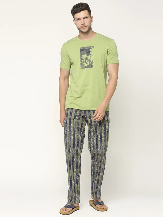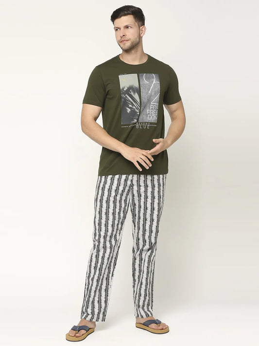 Men Cotton Printed Olive Pyjama- UnderJeans by Spykar
