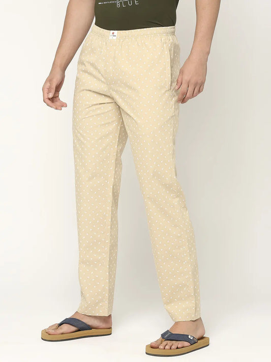 Men Cotton Printed Beige Pyjama- UnderJeans by Spykar
