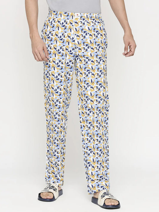 Men Cotton Printed Yellow Pyjama- UnderJeans by Spykar
