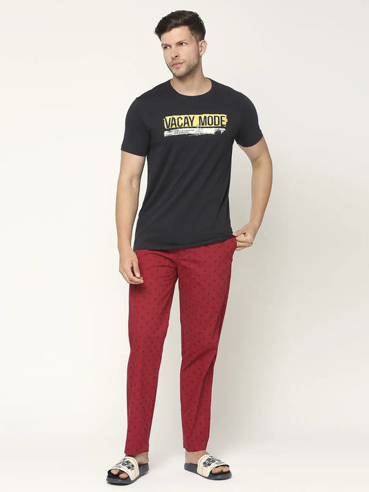 Men Cotton Printed Maroon Pyjama- UnderJeans by Spykar